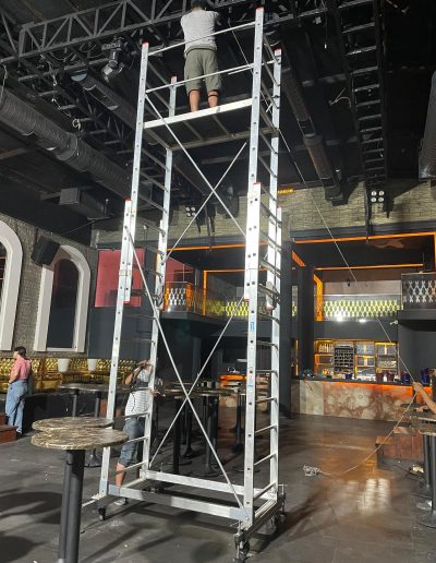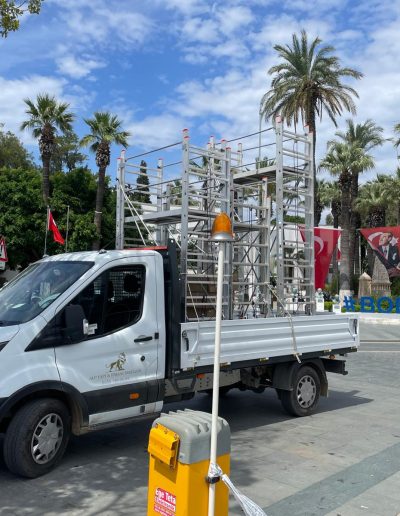 Alışveriş merkezi gibi büyük ölçekli ticari projelerde alüminyum tekerlekli iskele sistemlerimiz tercih edildi. Geniş çalışma alanlarında bile hızlı ve güvenli montaj imkanı sunduk.